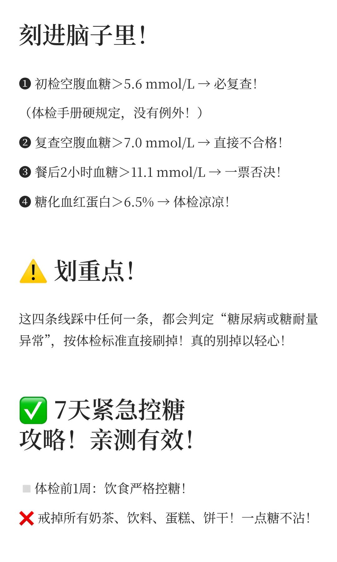 考公体检血糖超标?4条生死线+7天急救